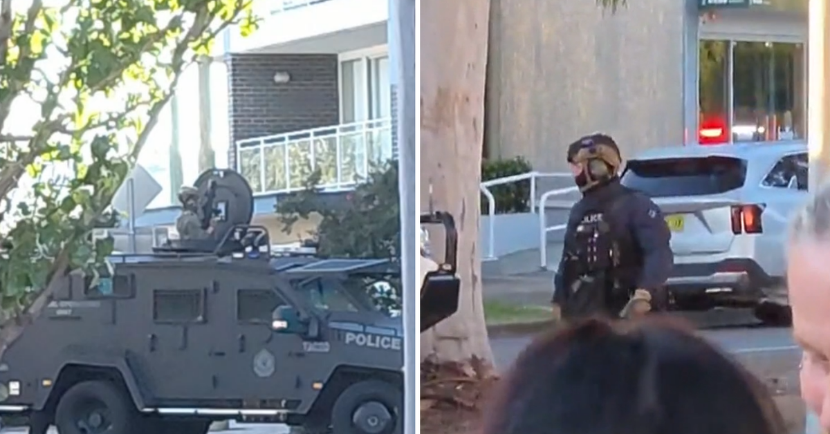 Tactical police swarmed the main street of Cessnock, about 25 miles west of Newcastle, this afternoon, a day after a man allegedly attacked and threatened to kill a woman.