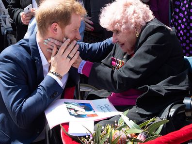 Among the crowds who gathered at the Opera House to catch a glimpse of the royals was Prince Harry’s “biggest fan”, 97-year-old former soldier Daphne Dunne.