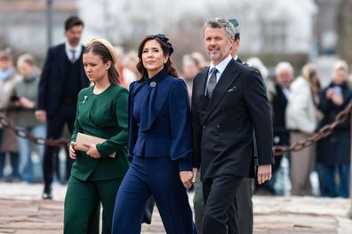 Mary chose a dark navy suit for the occasion, while the other royals wore brightly-coloured outfits.