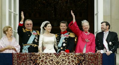 Queen Margrethe II made a brief appearance on the steps with the rest of the royals and was later seen inside the palace chapel during the ceremony.