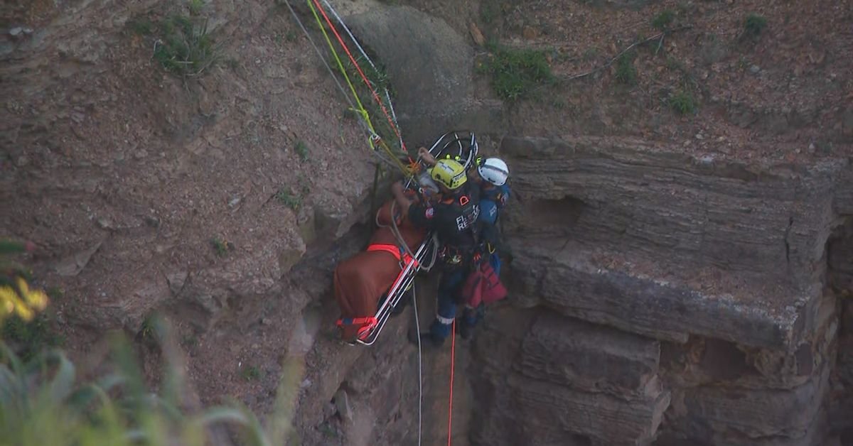 He was stabilized on a stretcher and after three hours safely lifted to the top of the cliff, where his family and an ambulance were waiting to transport him to hospital.